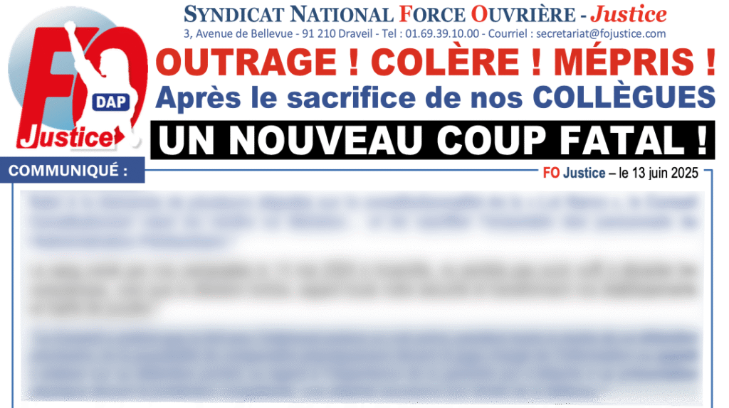 ► Pour FO Justice, LA COUPE EST PLEINE, NOTRE COLÈRE EST IMMENSE !